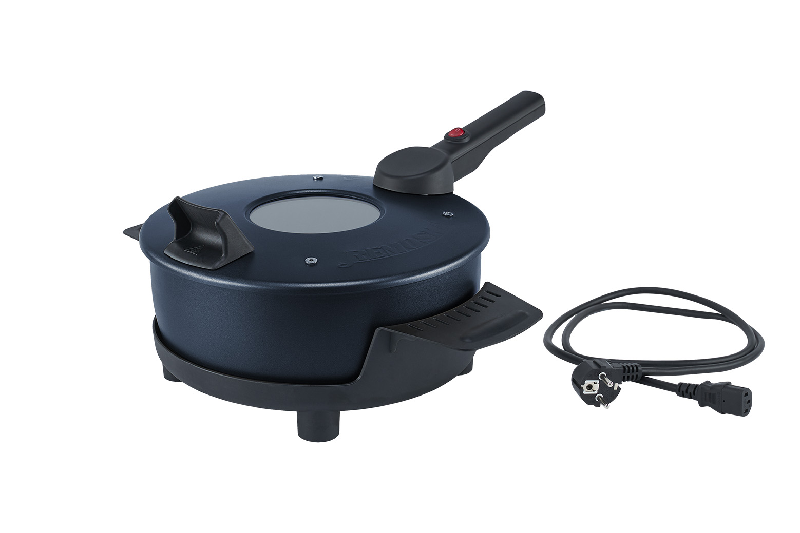 Stojan, ktorý je vyrobený z tepelne odolného plastu slúži na jednoduchú manipuláciu s misou v priebehu varenia ale aj na následné servírovanie pokrmov priamo na stôl.